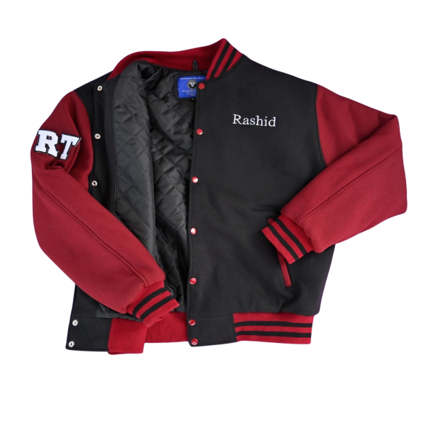 Our Cheap Custom Letterman Jackets are crafted with top-notch materials. The body features premium wool in classic black, while the sleeves are made of genuine red leather. Inside, you'll find a...